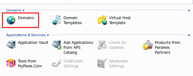 Кликаем по ссылке Domains на главной странице Plesk панели.