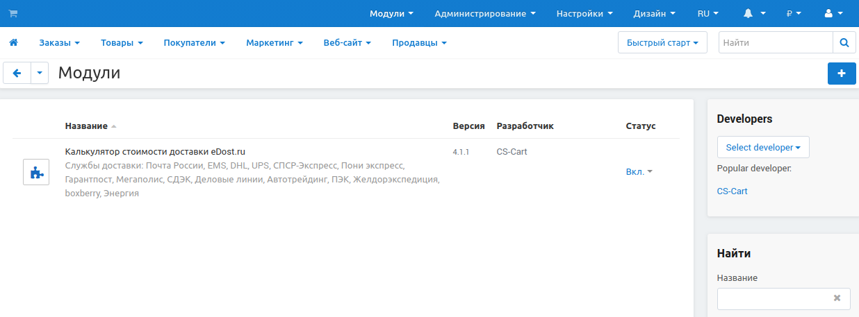 Модуль “Калькулятор стоимости доставки eDost.ru” позволяет добавить автоматический расчёт стоимости доставки для различных служб: