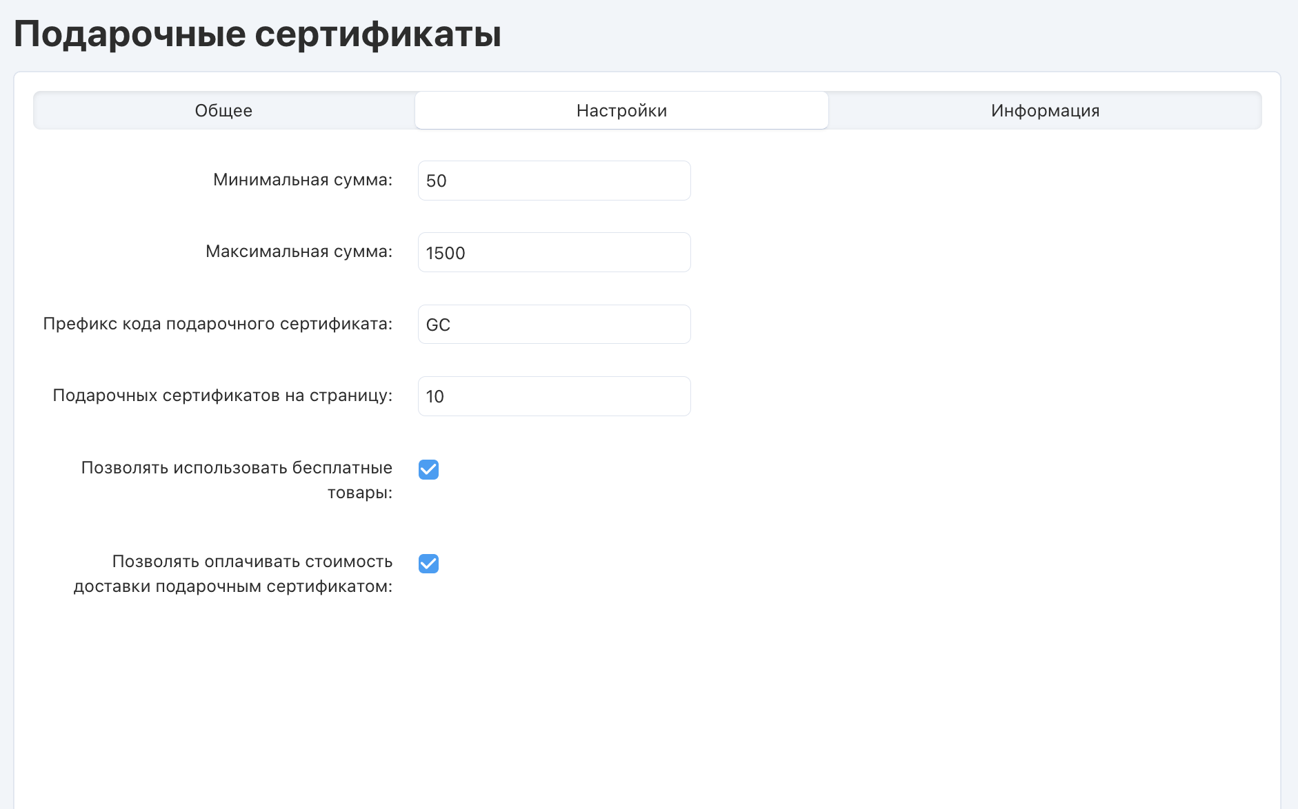 Прежде чем покупатели смогут покупать и использовать подарочные сертификаты, нужно настроить модуль: