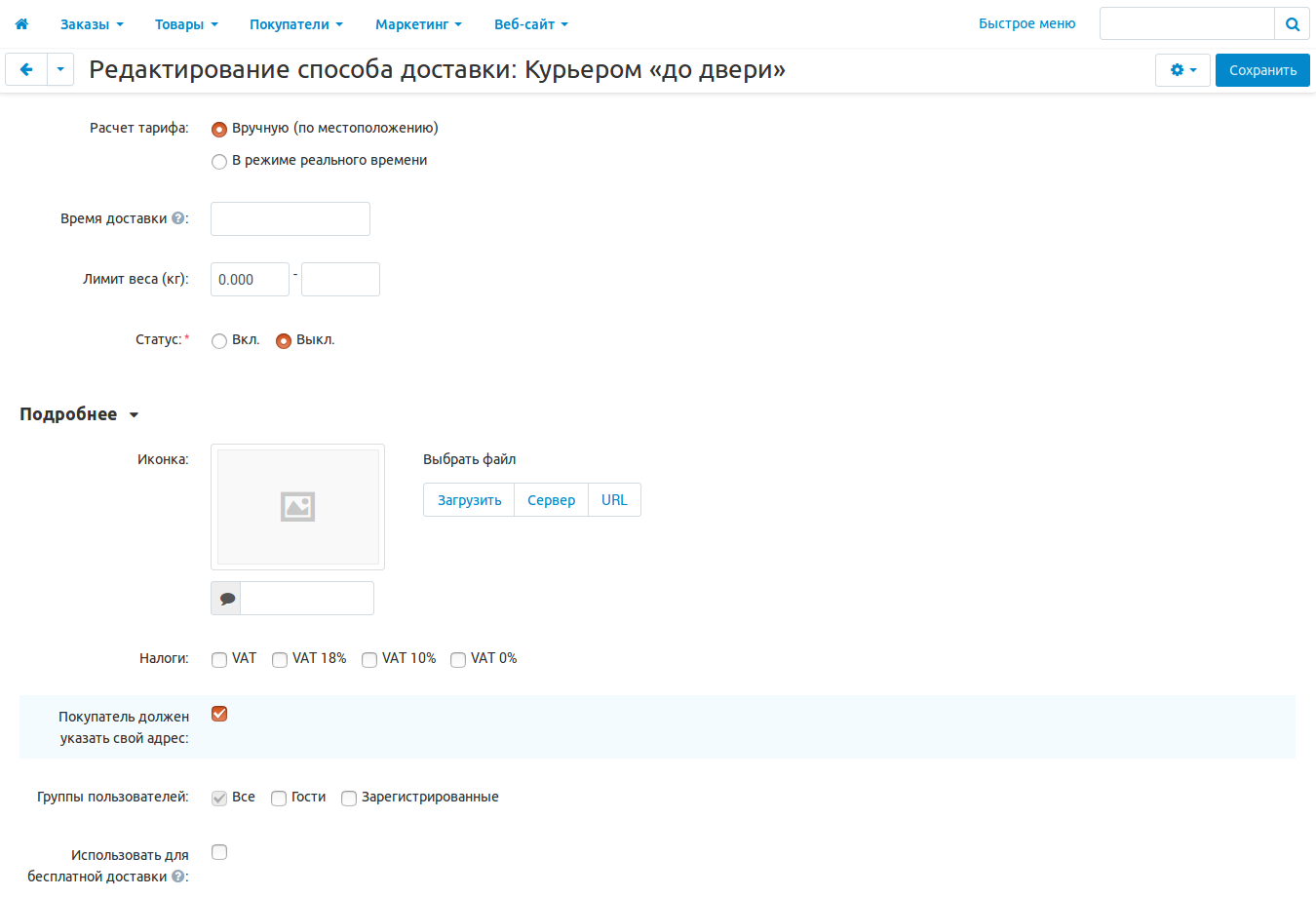 (опционально) Если хотите при нажатии на название города отображать не карту, а список городов, то укажите нужные города для списка в разделе Администрирование → Доставка и налоги → Города (геолокация).