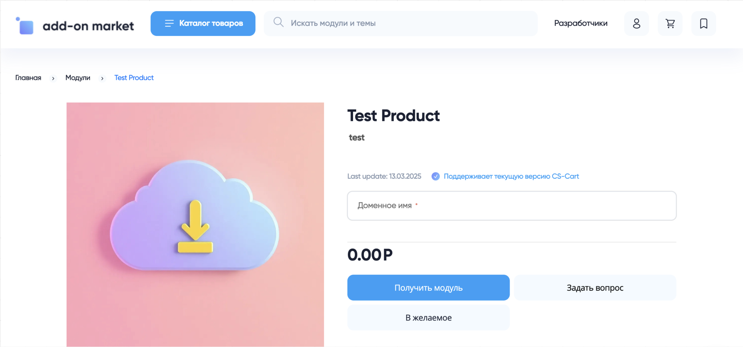 - Перейдите на страницу нужного модуля на маркетплейсе модулей Add-on market.