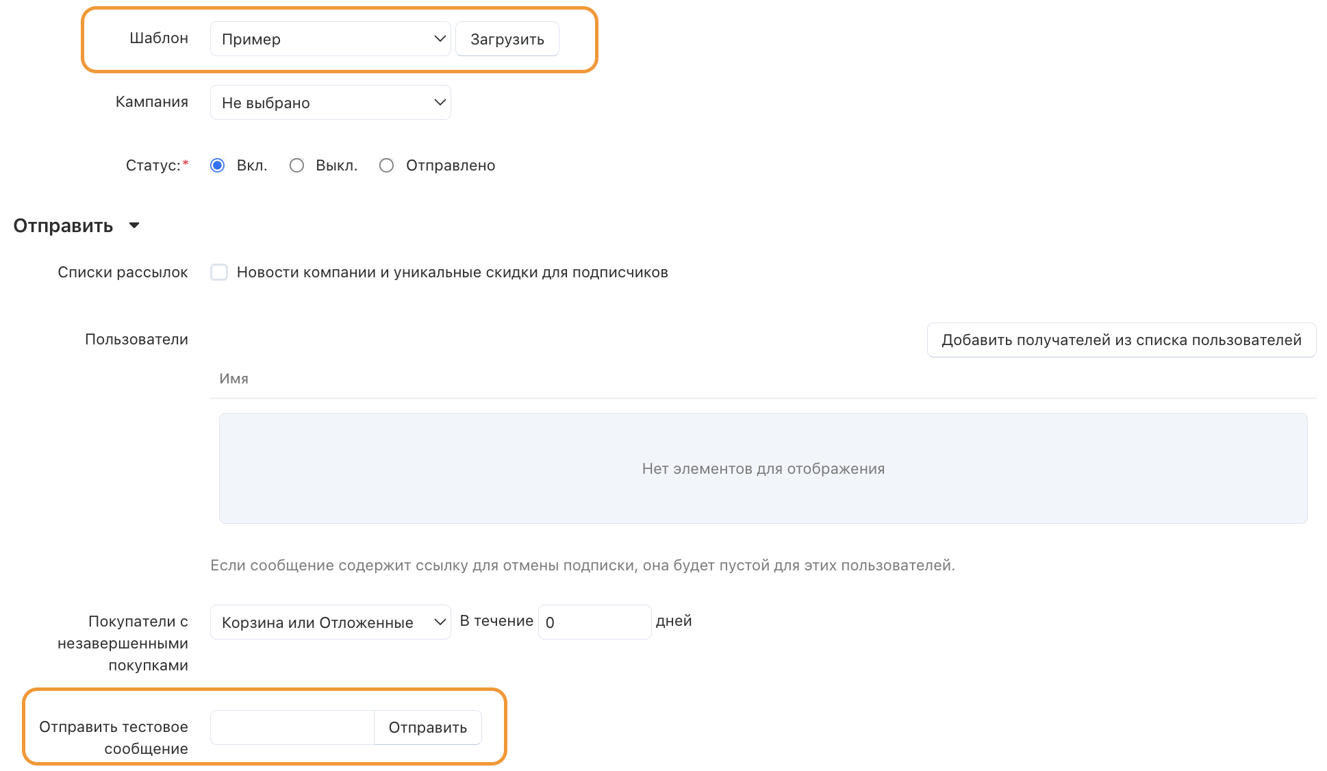 Вы можете предварительно просмотреть шаблон, отправив тестовую рассылку на адрес электронной почты по вашему выбору: