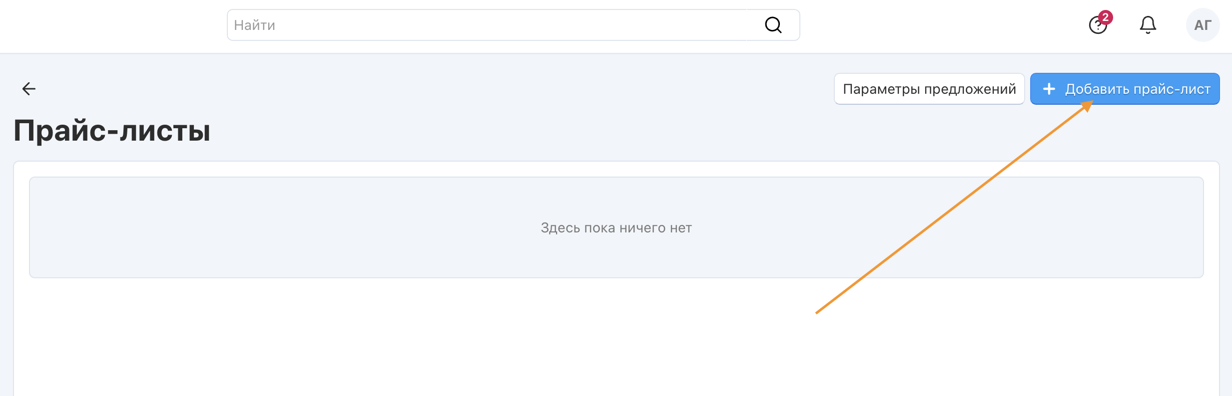 После сохранения изменений, вернитесь на страницу Настройки → Экспорт в Яндекс.Маркет. Нажмите на кнопку добавления прайс-листа.