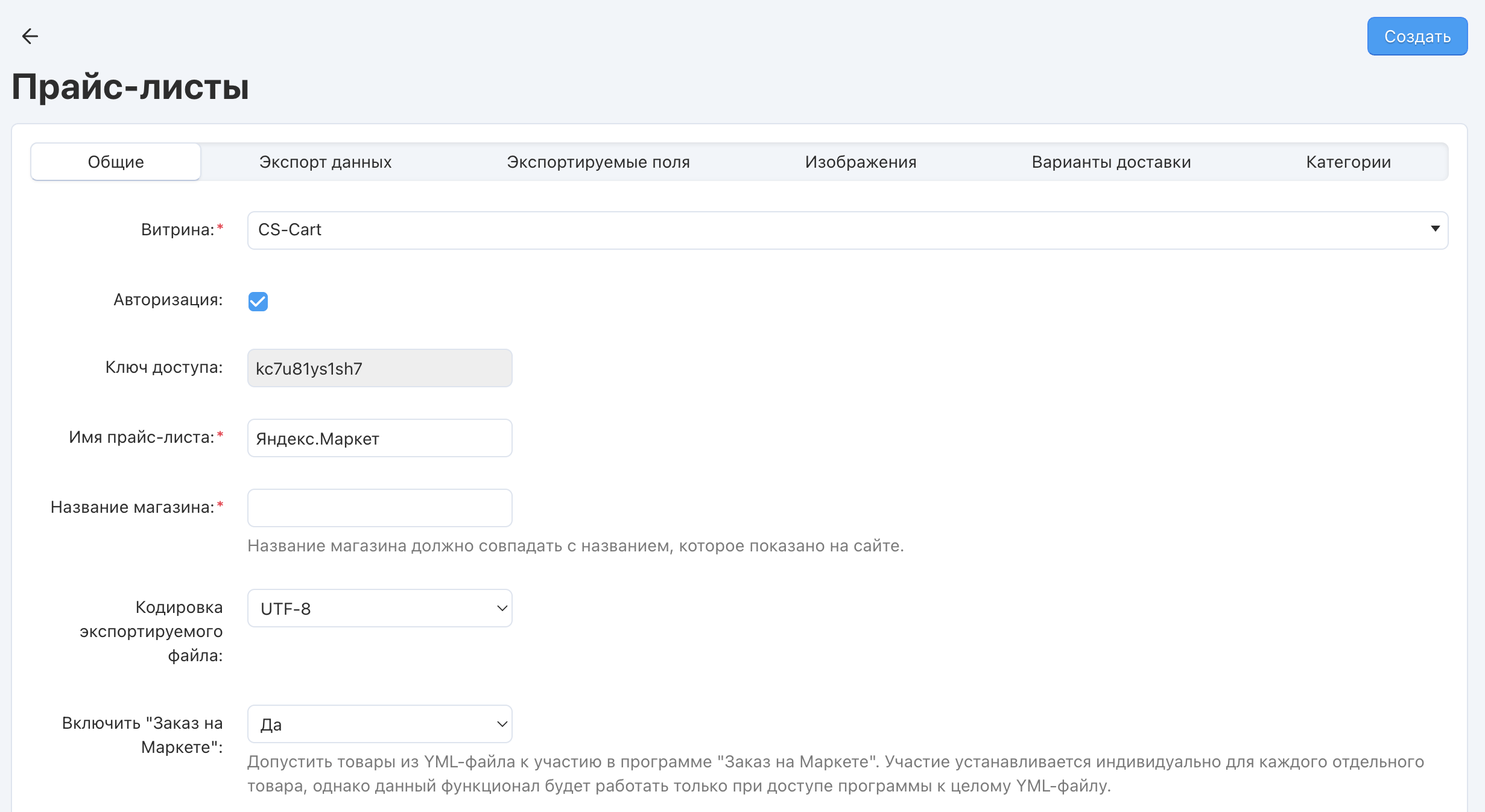 “Экспорт в Яндекс.Маркет”¶