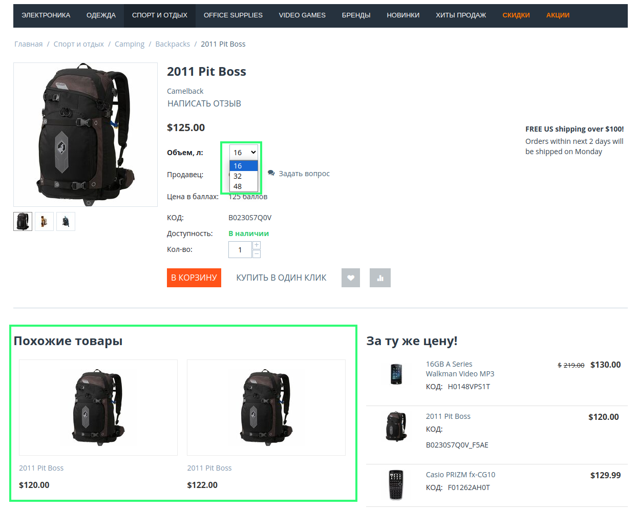 Бывает, что у товаров есть много похожих вариантов, которые отличаются цветом или размером. Например, можно предложить футболки разных размеров и цветов или смартфоны с разным объемом памяти. Эти свойства товаров, как правило, нельзя поменять.