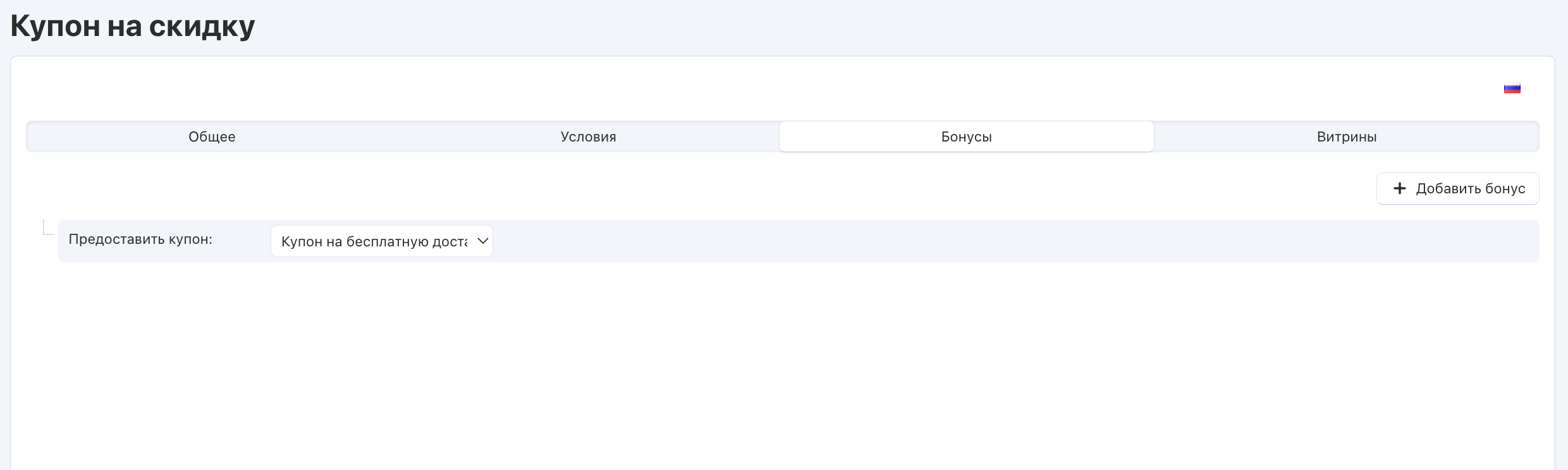 Купон — это промо-акция для корзины. Покупатели получают бонусы при оформлении заказа, если введут код купона.