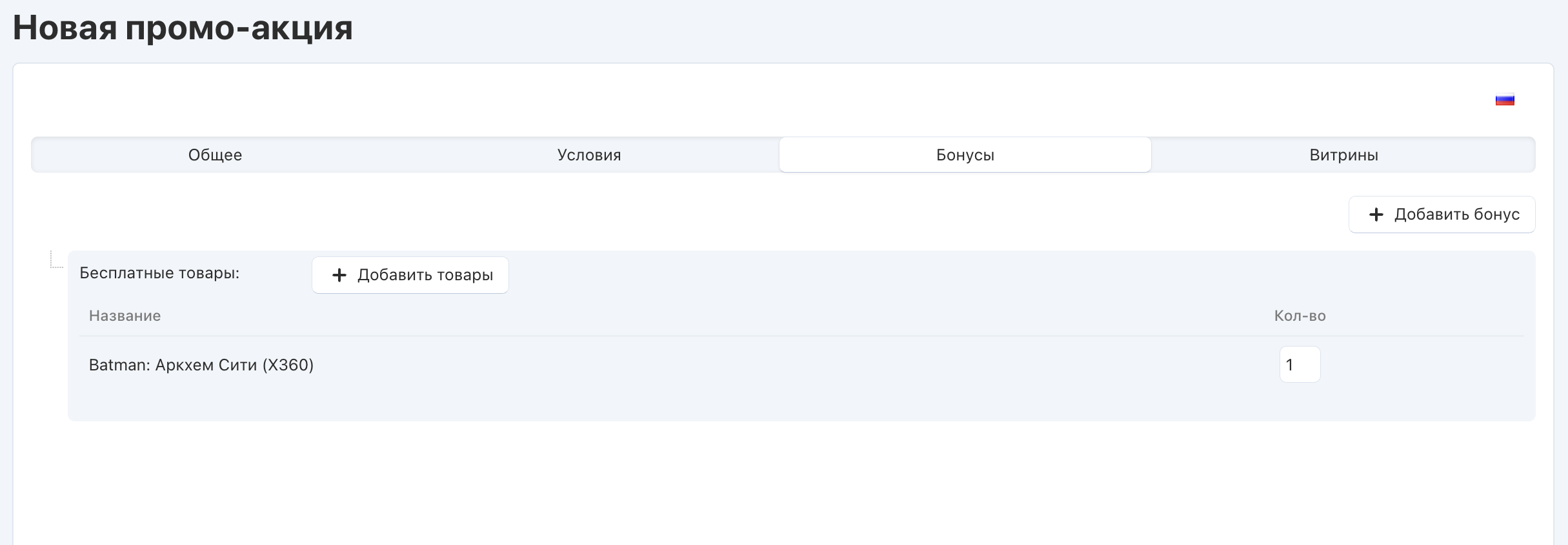 6. Перейдите на вкладку Бонусы и нажмите кнопку Добавить бонус.