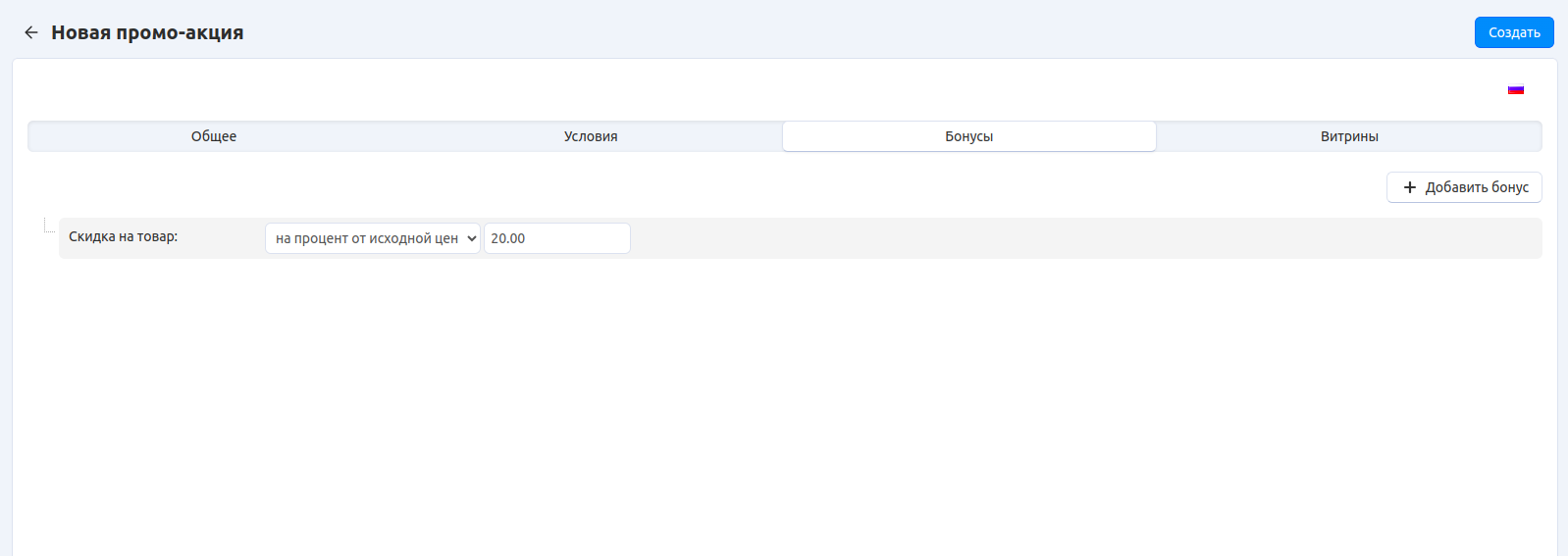 6. Перейдите на вкладку Бонусы. Она определяет, какие бонусы получит покупатель от этой промо-акции.