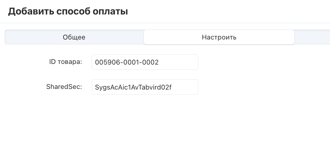Пройдите во вкладку “Настроить” нового способа оплаты и выполните настройку.