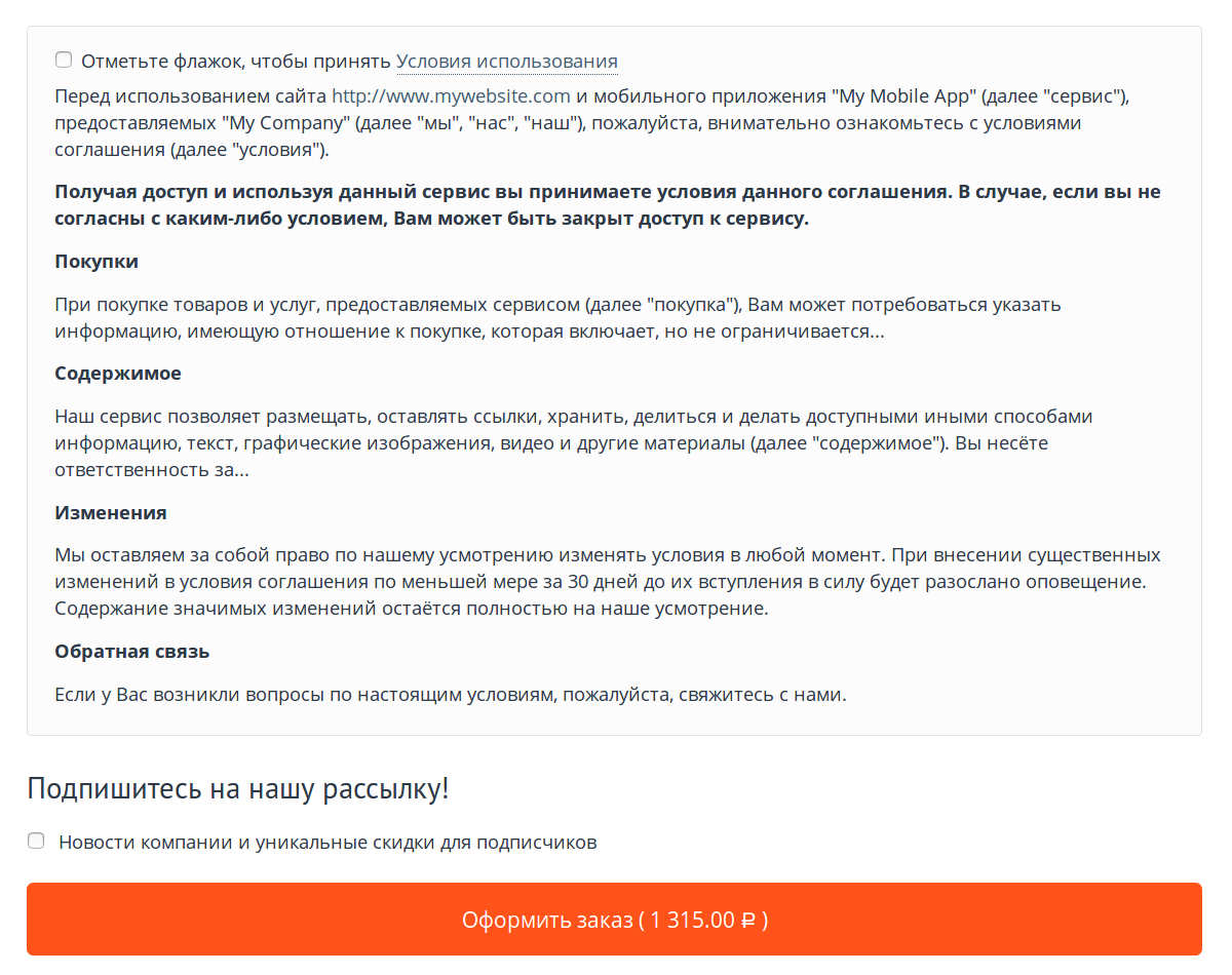 В CS-Cart можно попросить покупателя согласиться с условиями перед покупкой товара. Покупатели соглашаются с условиями на странице оформления заказа. В статье описано, как добавить эти условия и отредактировать их.