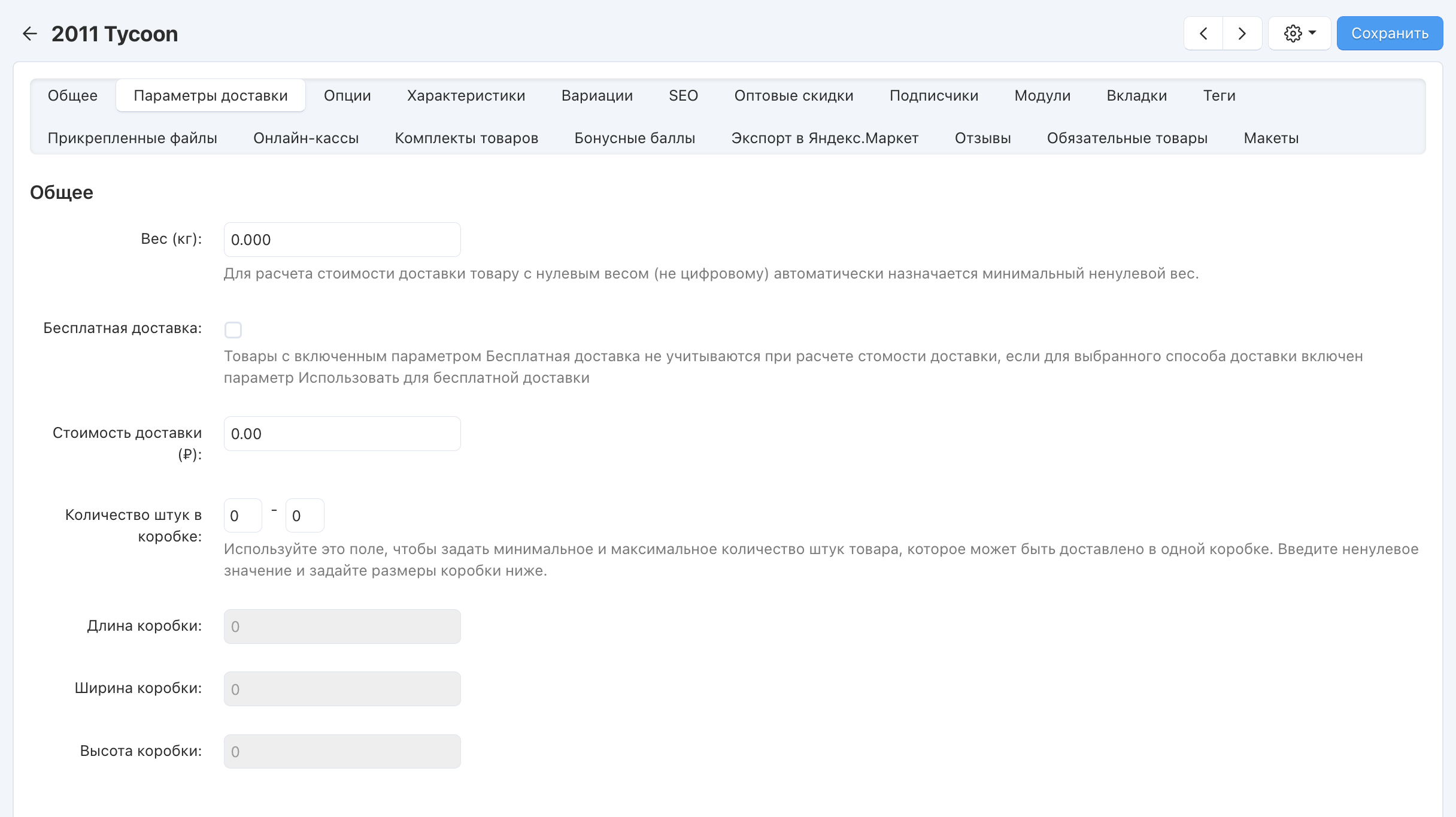 В поле Стоимость доставки введите сумму, которая будет взиматься за единицу товара.