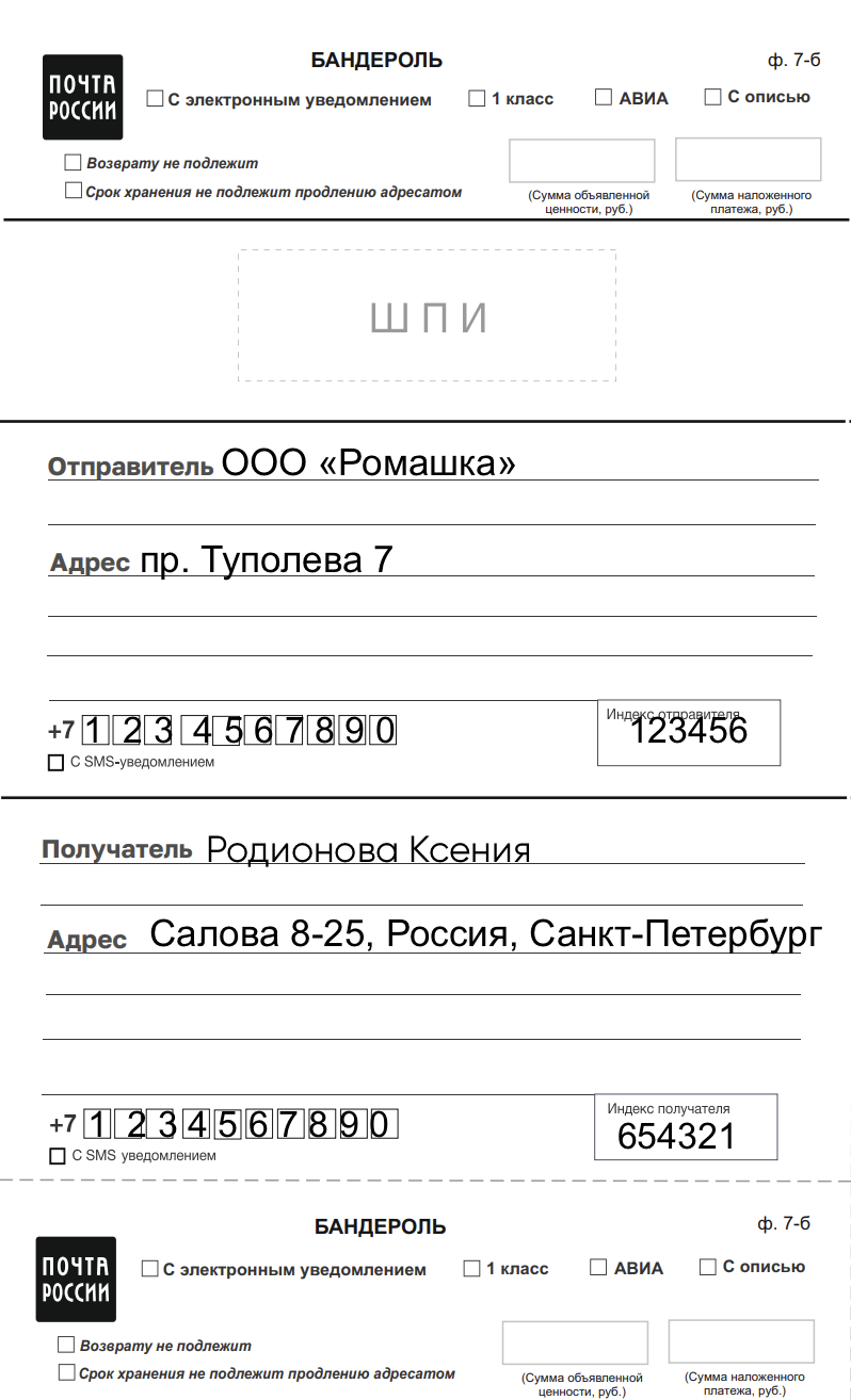 - Форма 7б. Бланк адресного ярлыка к бандероли.