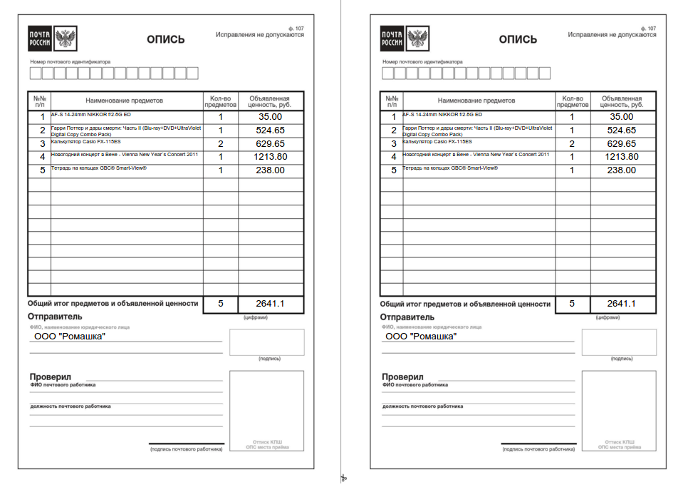 Бланки и примеры взяты с официального сайта Почты РФ.