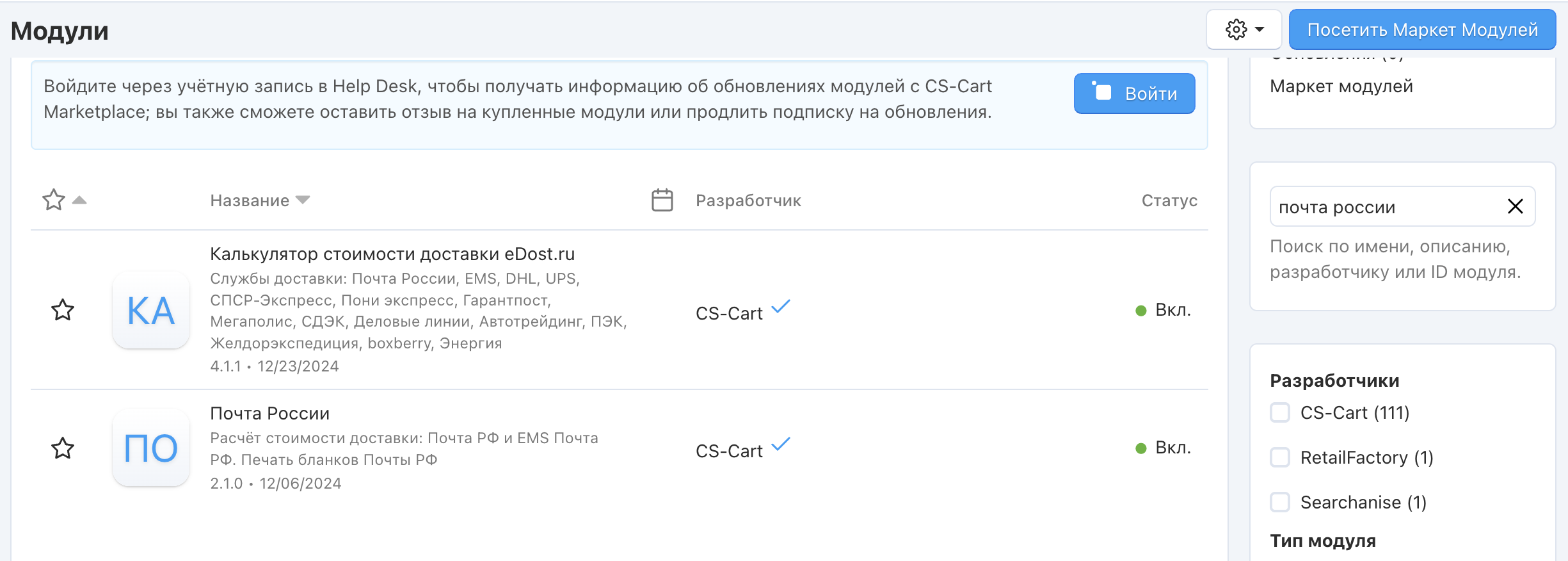 Установите модуль “Почта России”.