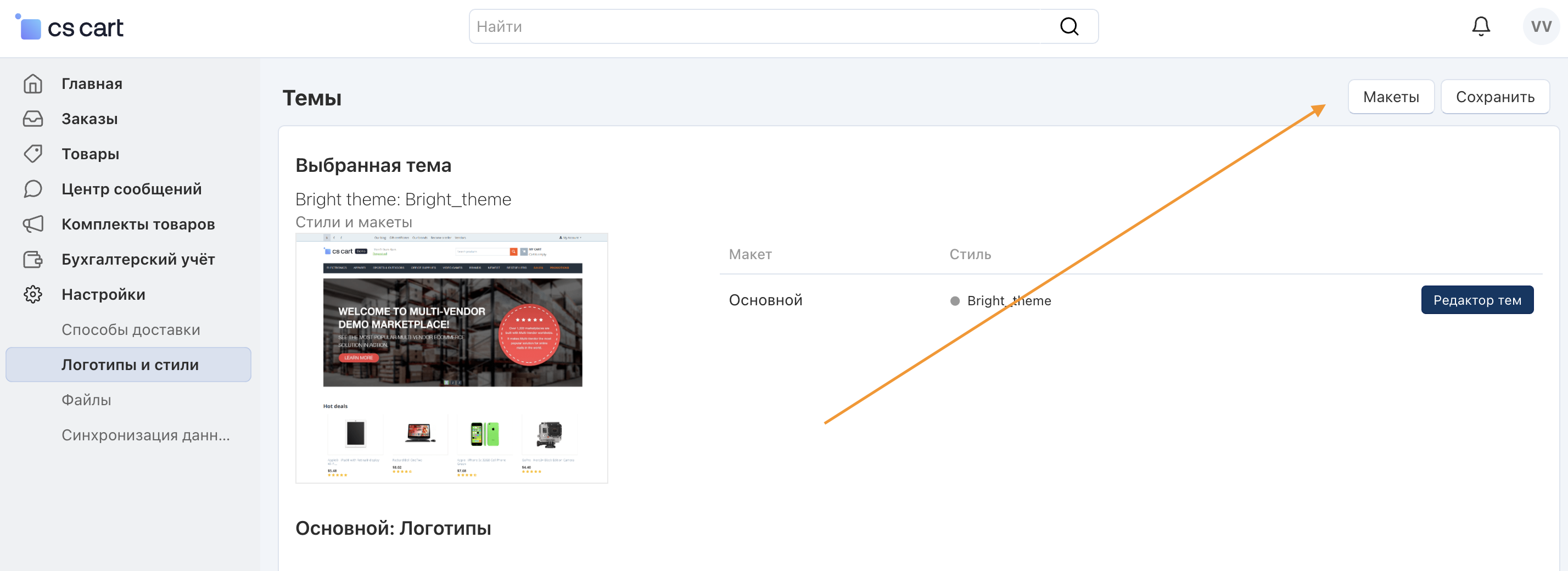Откройте страницу Настройки → Логотипы и стили → Макеты.