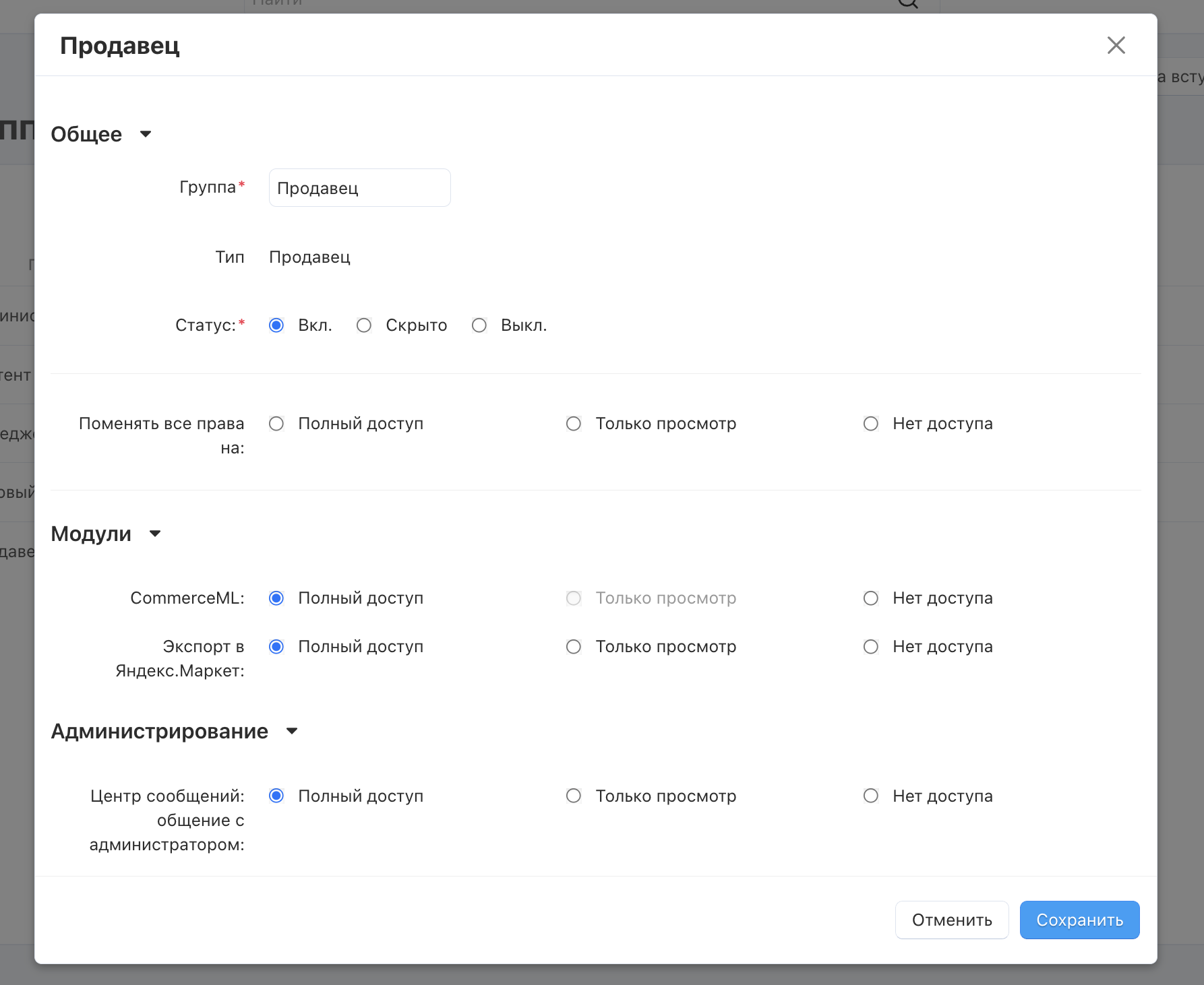 Эти изменения не коснутся уже существующих администраторов продавцов. Если нужно, существующим администраторам можно назначить группу вручную. Поэтому шаг 3 в этой инструкции является необязательным.