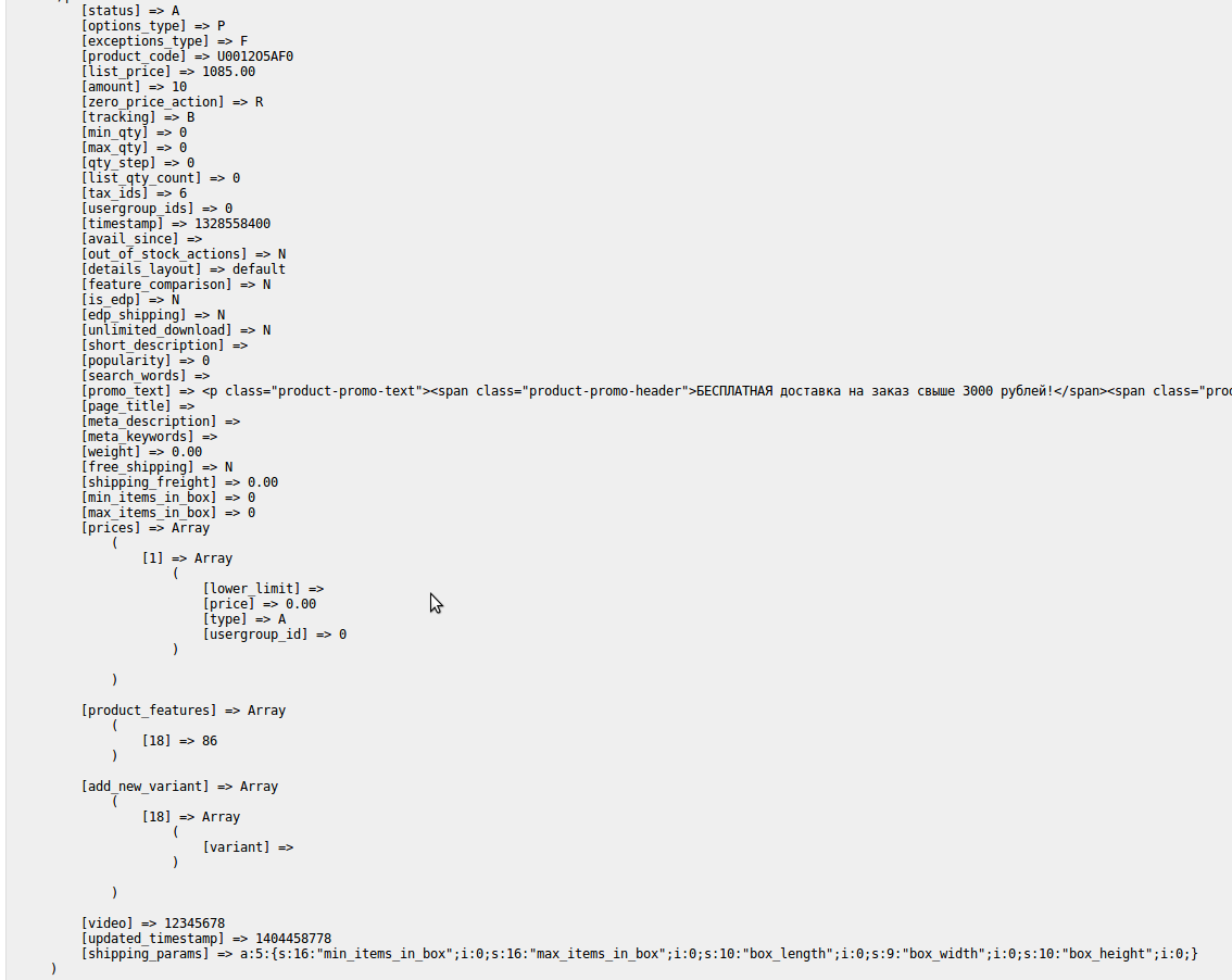 Ключи массива соответствуют колонкам таблицы cscart_products . Если в таблице есть колонка с соответствующим названием, то она будет обновлена.