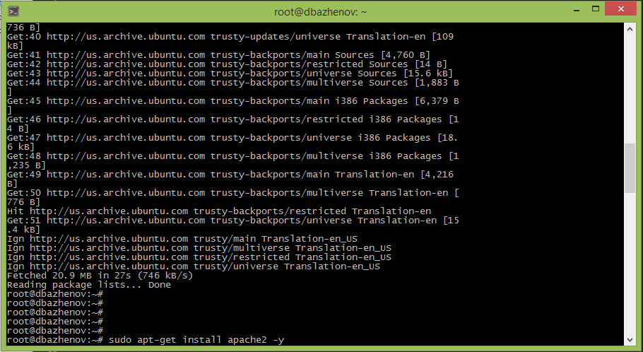 sudo apt-get install apache2 -y