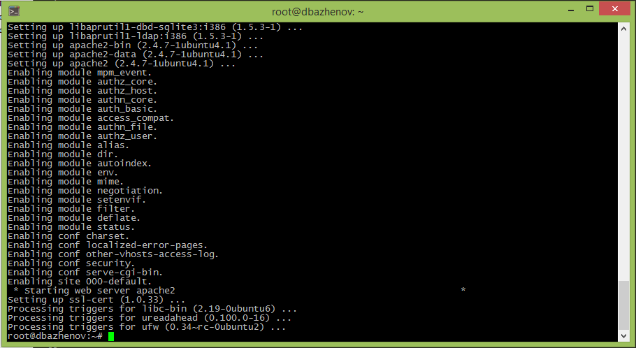 Устанавливаем Apache с помощью команды серверу. Запустите в терминале (PuTTY) команду: