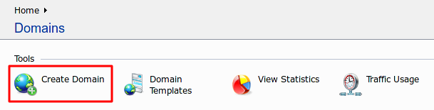 Кликаем по ссылке Domains на главной странице Plesk панели.