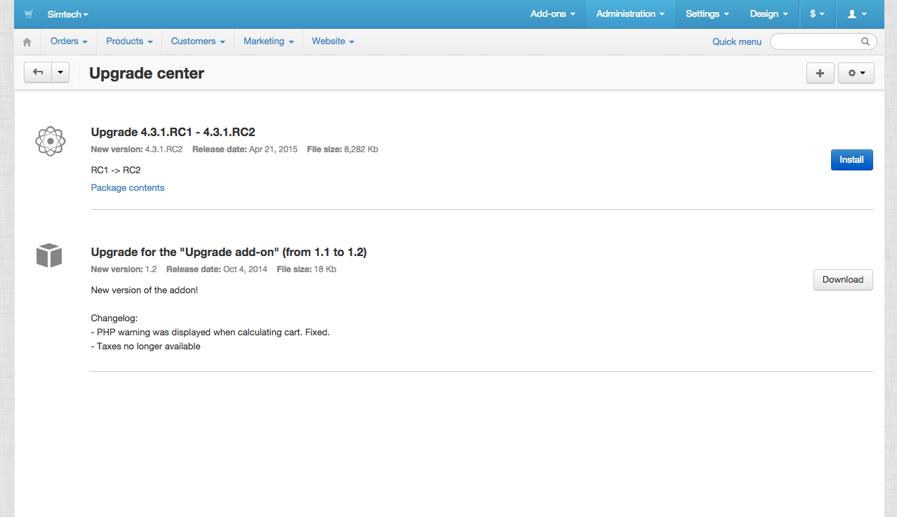 • Core — пакеты скачиваются через $config['resources']['updates_server'] (http://updates.cs-cart.com).