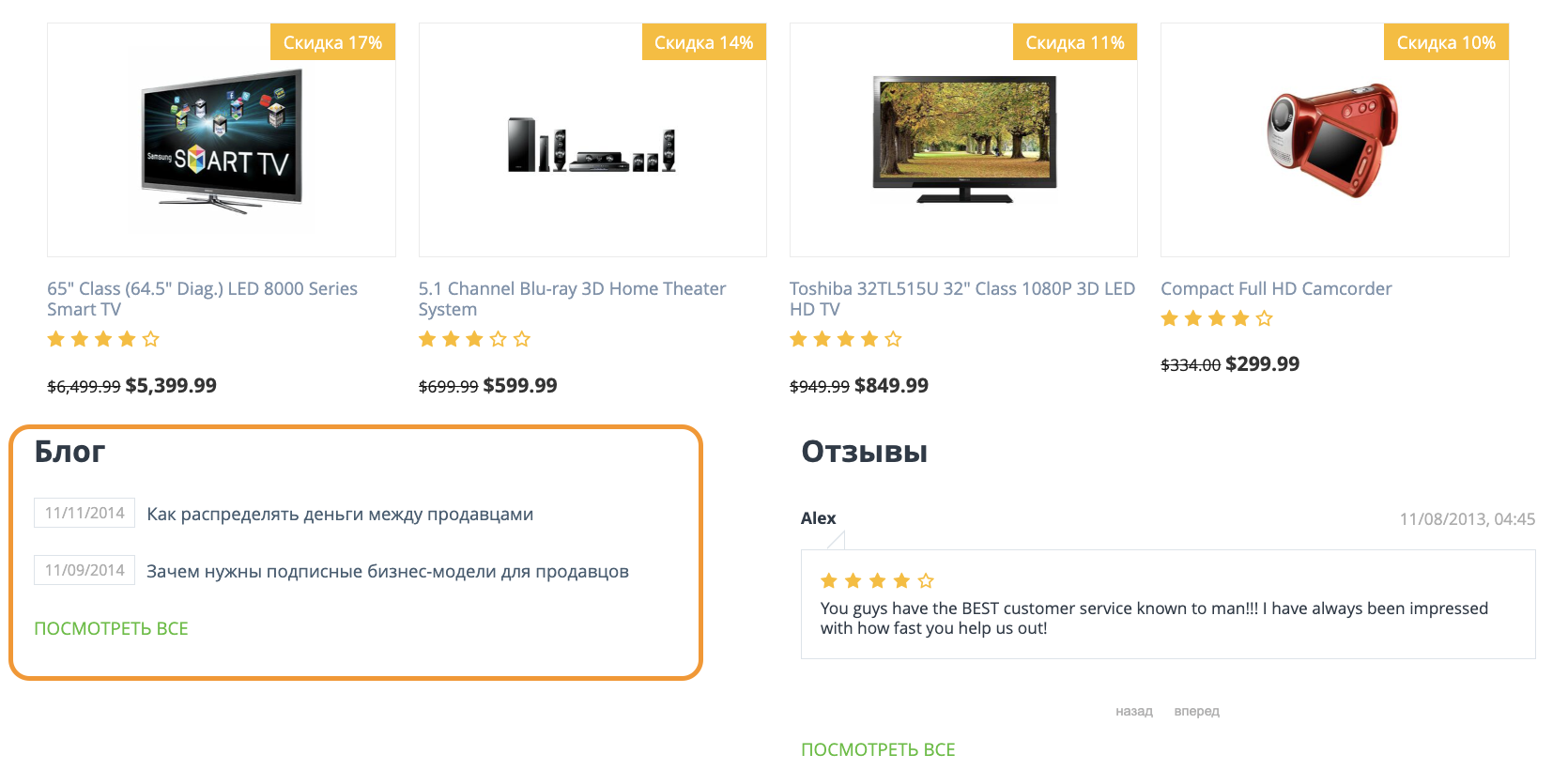 Как добавить раздел «Последние посты в блоге» на витрину¶