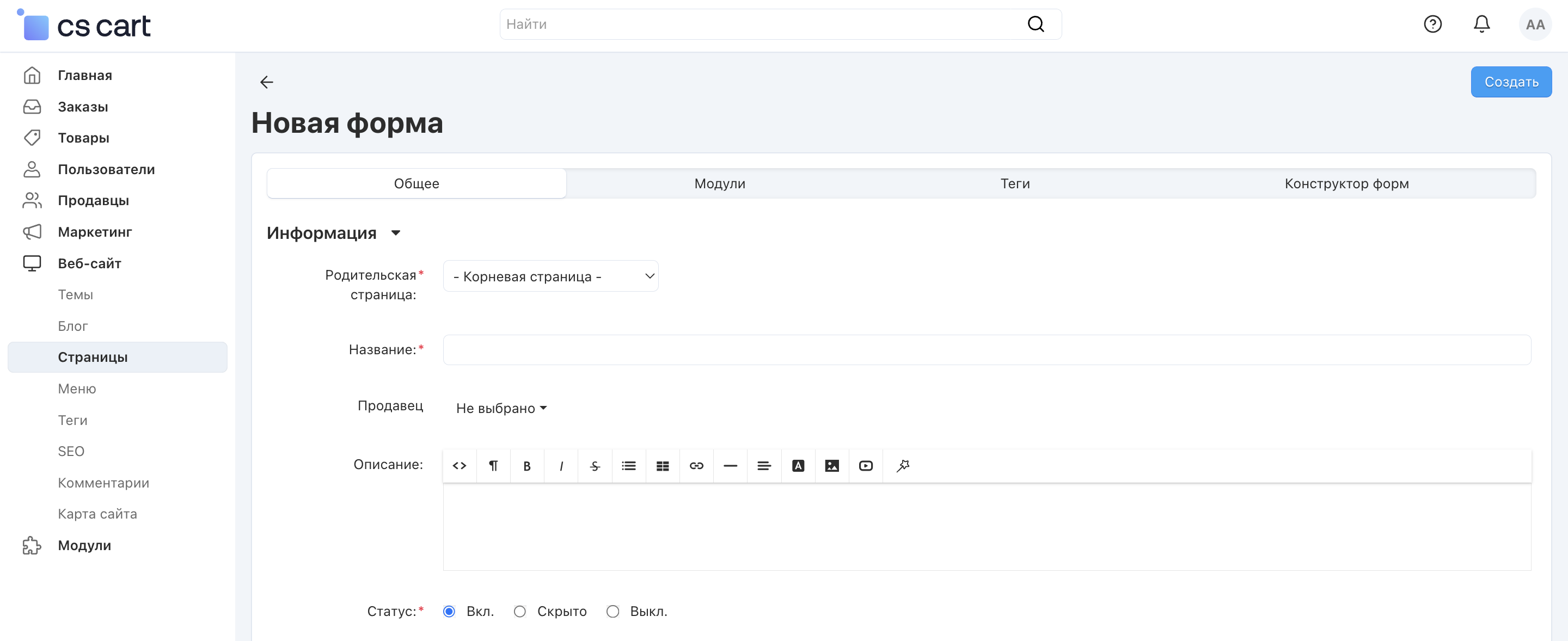 Откройте раздел Веб-сайт → Страницы.