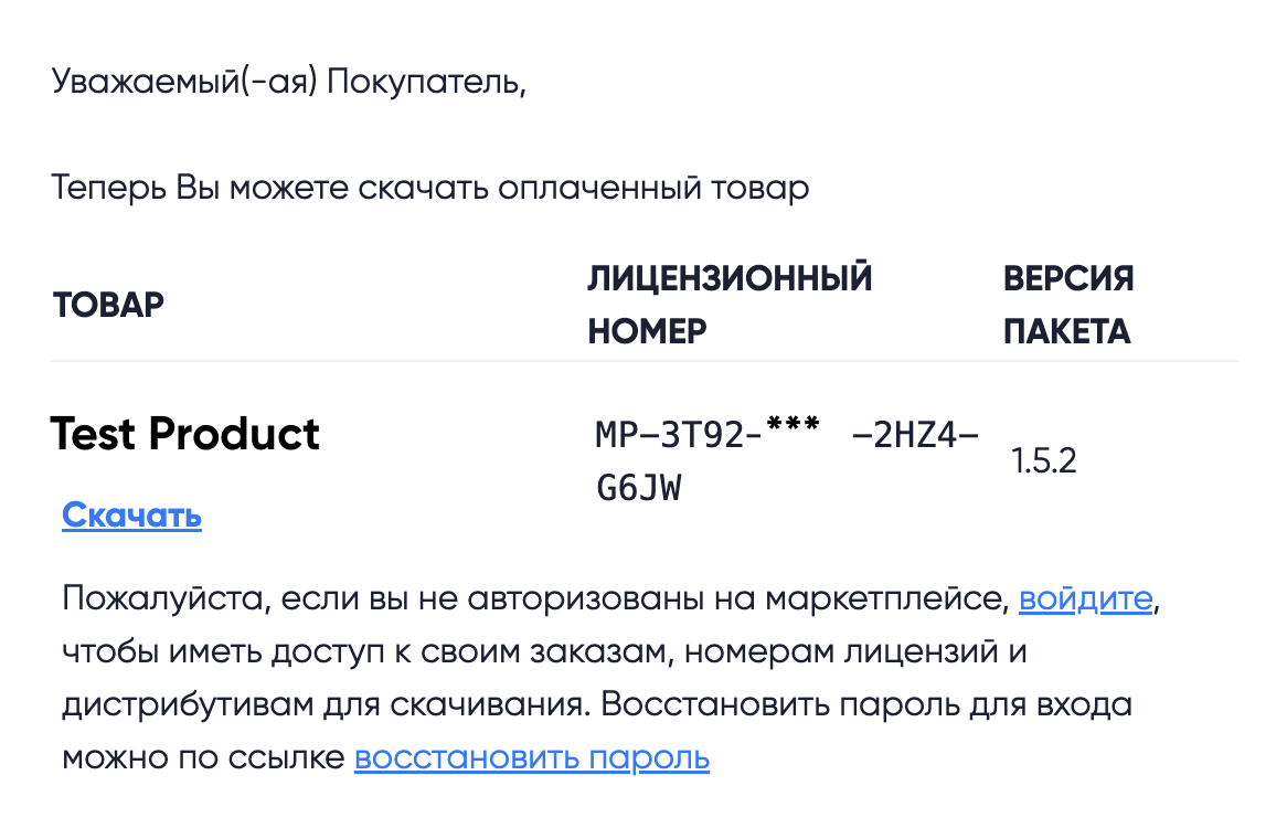 - После покупки модуля на странице оформления заказа вы получите письмо со ссылкой для загрузки файла.