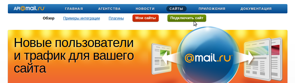 Пройдите в сервис «Сайты» от api.mail.ru: http://api.mail.ru/sites/