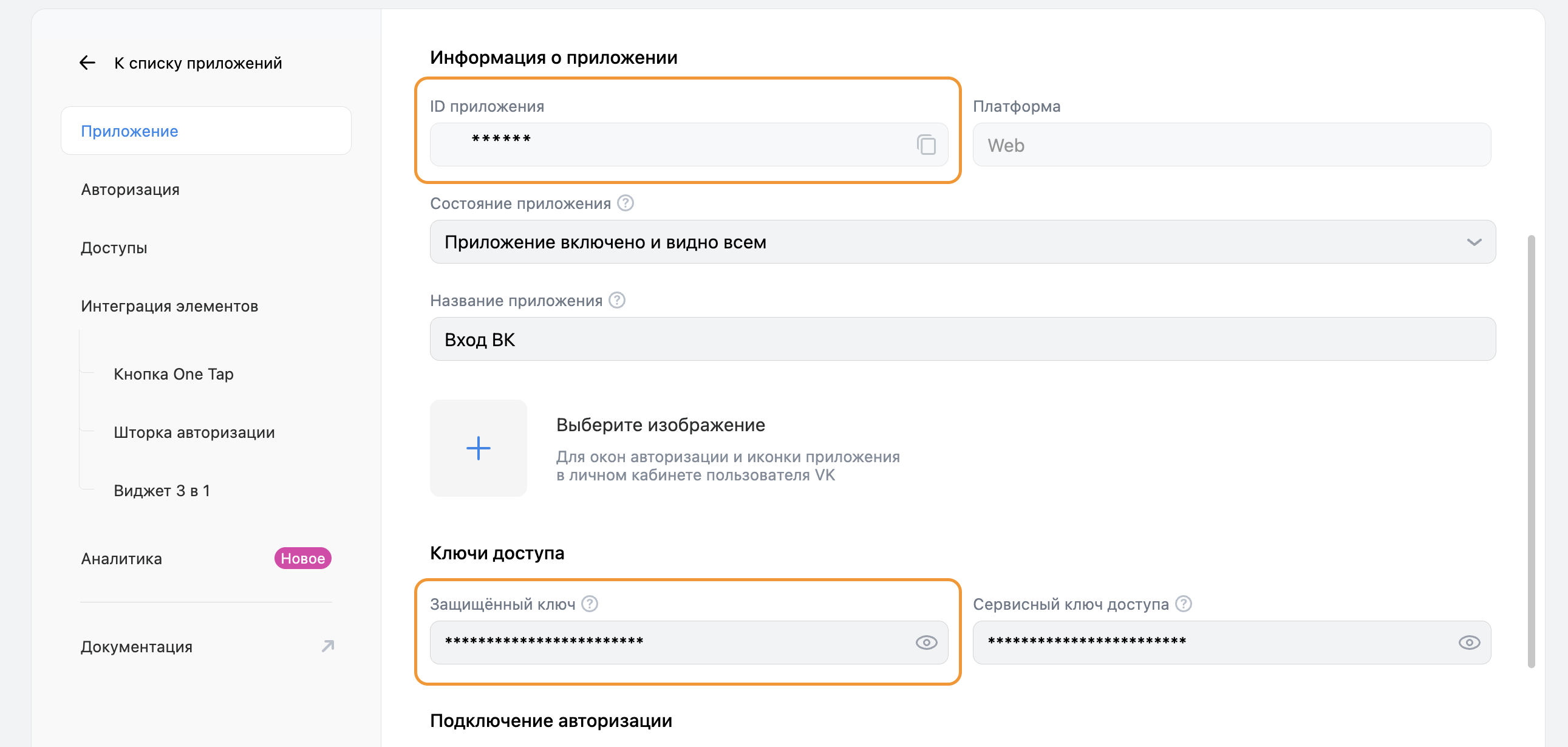 - Название вашего сервиса — это название будет отображаться в окне авторизации пользователя на вашем сайте.