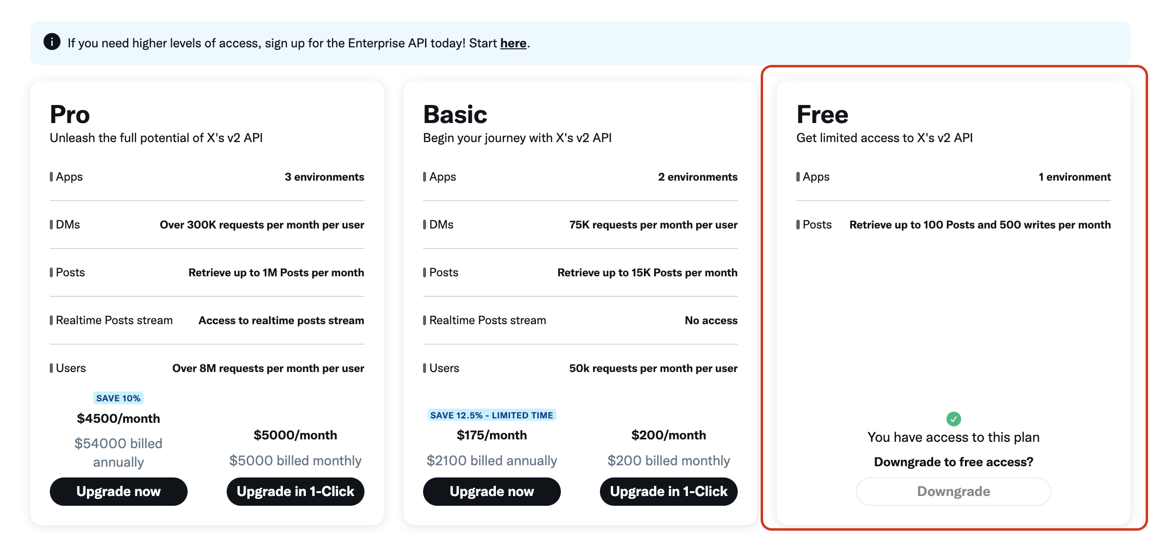 Если у вас нет аккаунта разработчика X, создайте его в портале соц. сети X. При регистрации нового аккаунта разработчика вам предложат несколько планов подписки, для настройки приложения для авторизации в CS-Cart бесплатной версии будет достаточно.