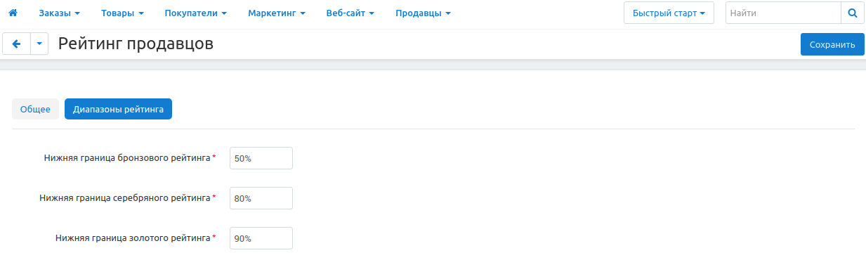 3. Установите Нижние границы рейтинга. Значения устанавливаются в процентах, где 100% — самое высокое значение рейтинга среди продавцов.
