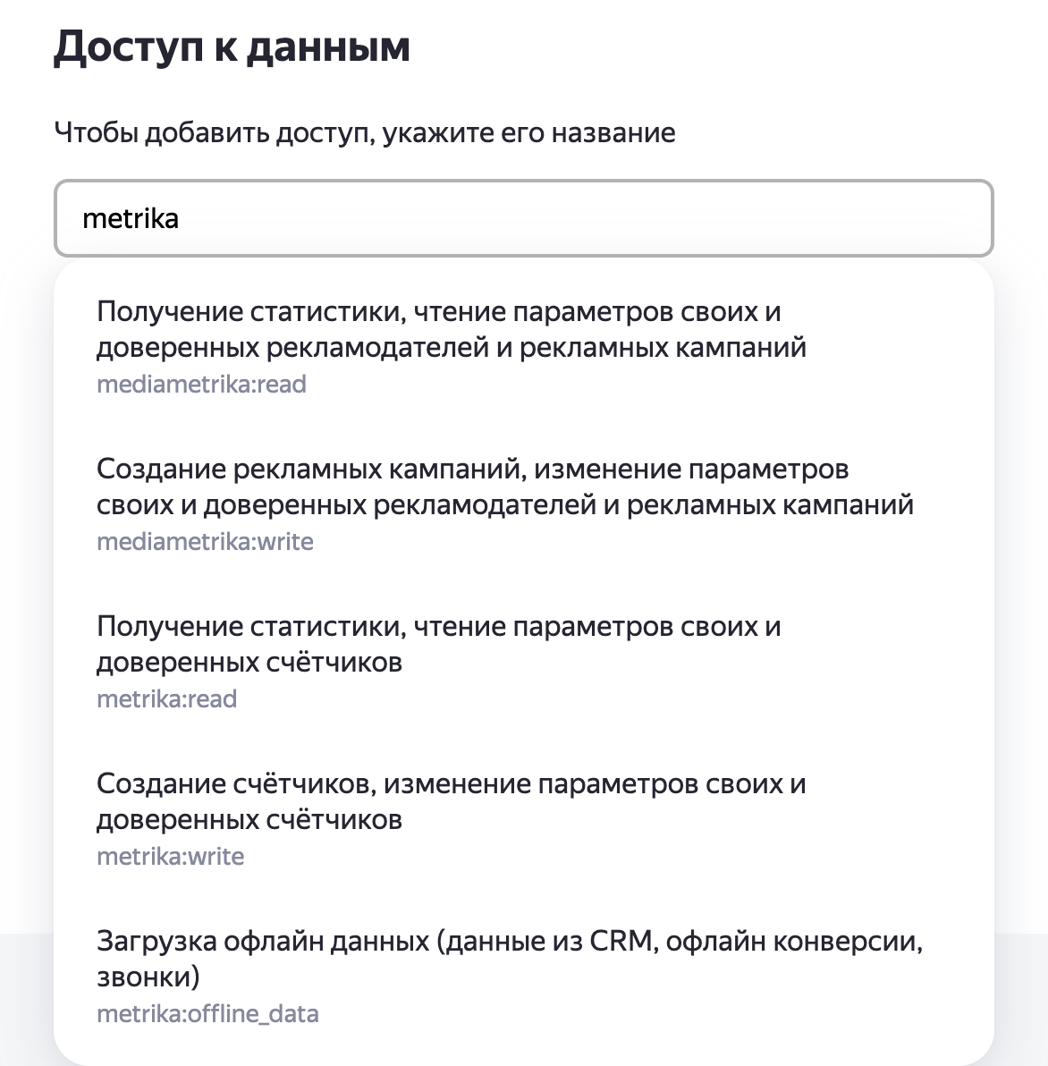 Для того, чтобы получить API Яндекс.Метрики, вам необходимо зарегистрировать приложение на Яндекс.OAuth.