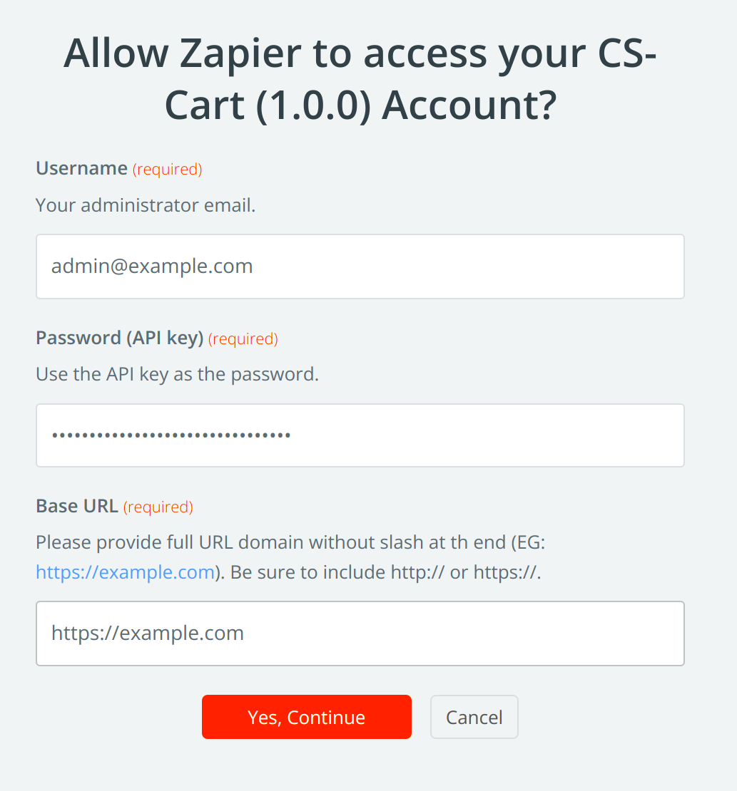 После ввода данных, разрешите Zapier доступ к вашему магазину, нажав Yes, continue.