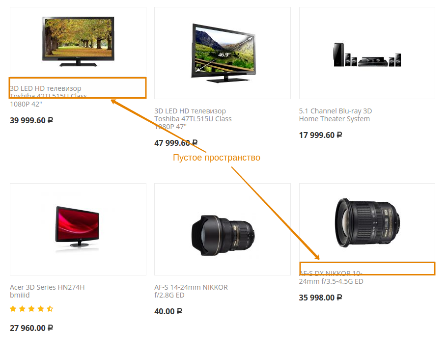 Если для изображений указать только ширину или только высоту, то сетка товаров может стать неровной.
