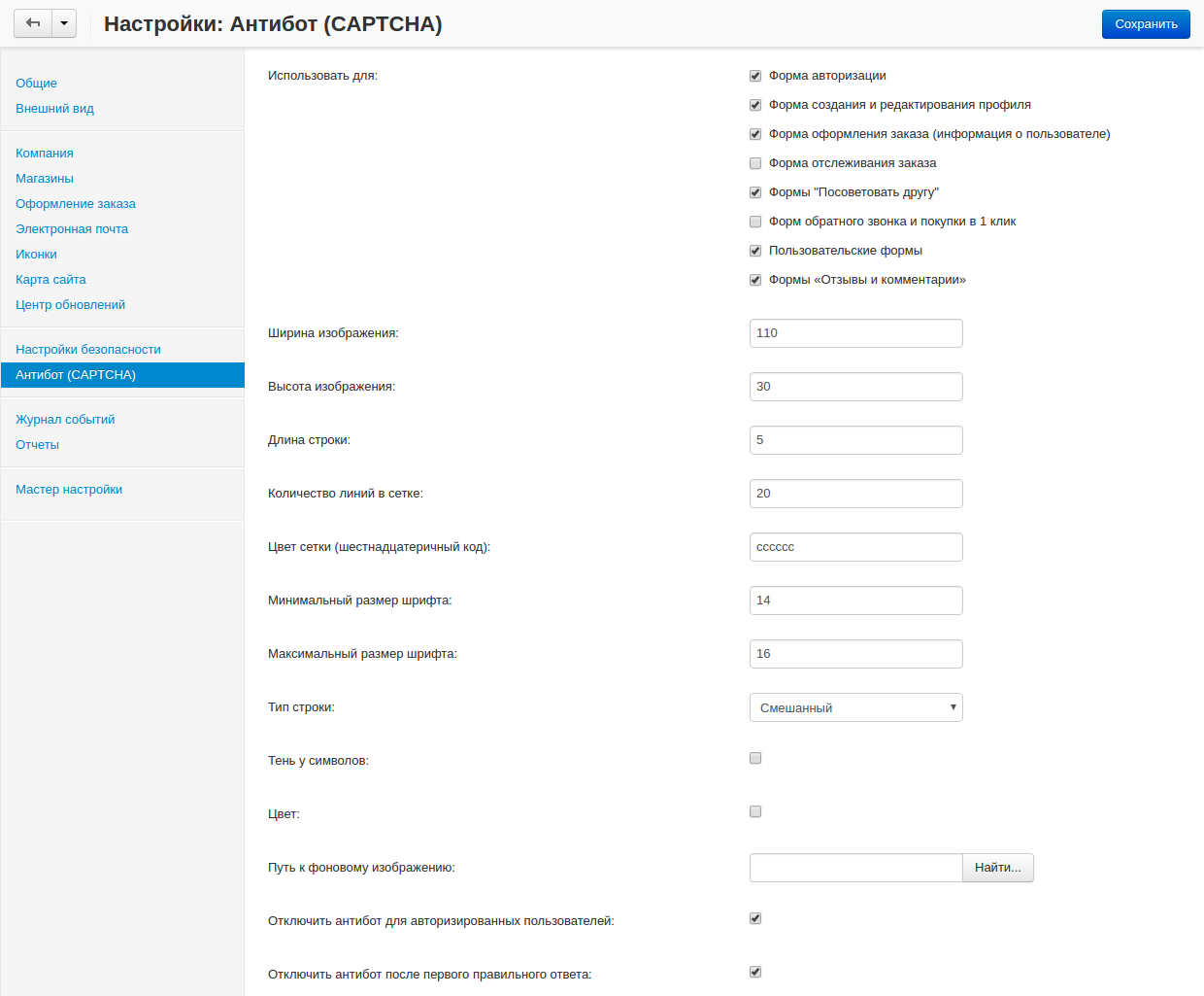 Как настроить антибот (CAPTCHA)¶