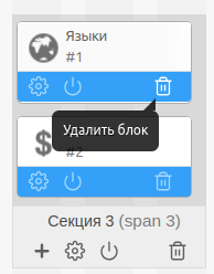 - Выберите блок из списка и нажмите на его иконку.