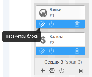 Наведите курсор на нужный блок и нажмите на иконку шестеренки. Откроется окно настройки блока.