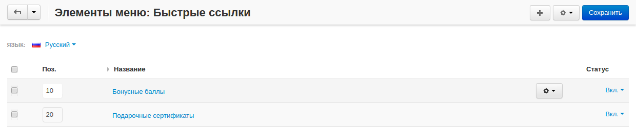 • In the Administration panel, go to Design → Menus and click the gear button of the desired menu.