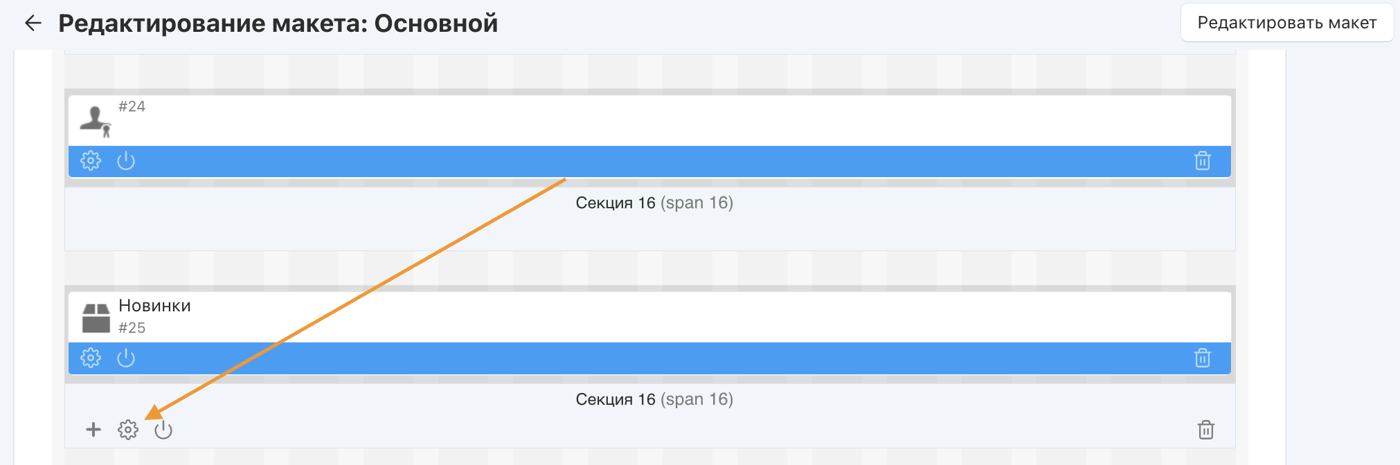 - Откройте страницу редактирования секции, содержащей нужный блок;