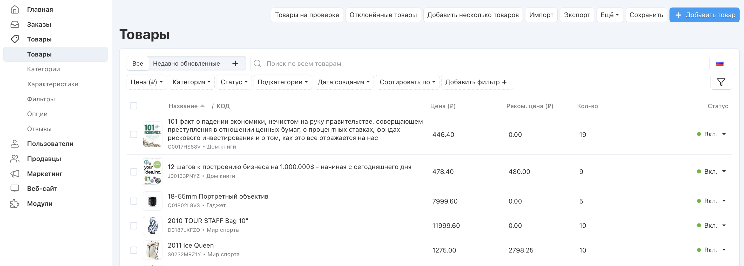 Каталог и товары¶ Данный раздел посвящен возможностям платформы по созданию и редактированию товаров и категорий. Категории Действия над категориями Статьи в этом разделе Товары Действия над товарами Статьи в этом разделе Характеристики Статьи в этом разделе Фильтры Статьи в этом разделе Опции Статьи в этом разделе