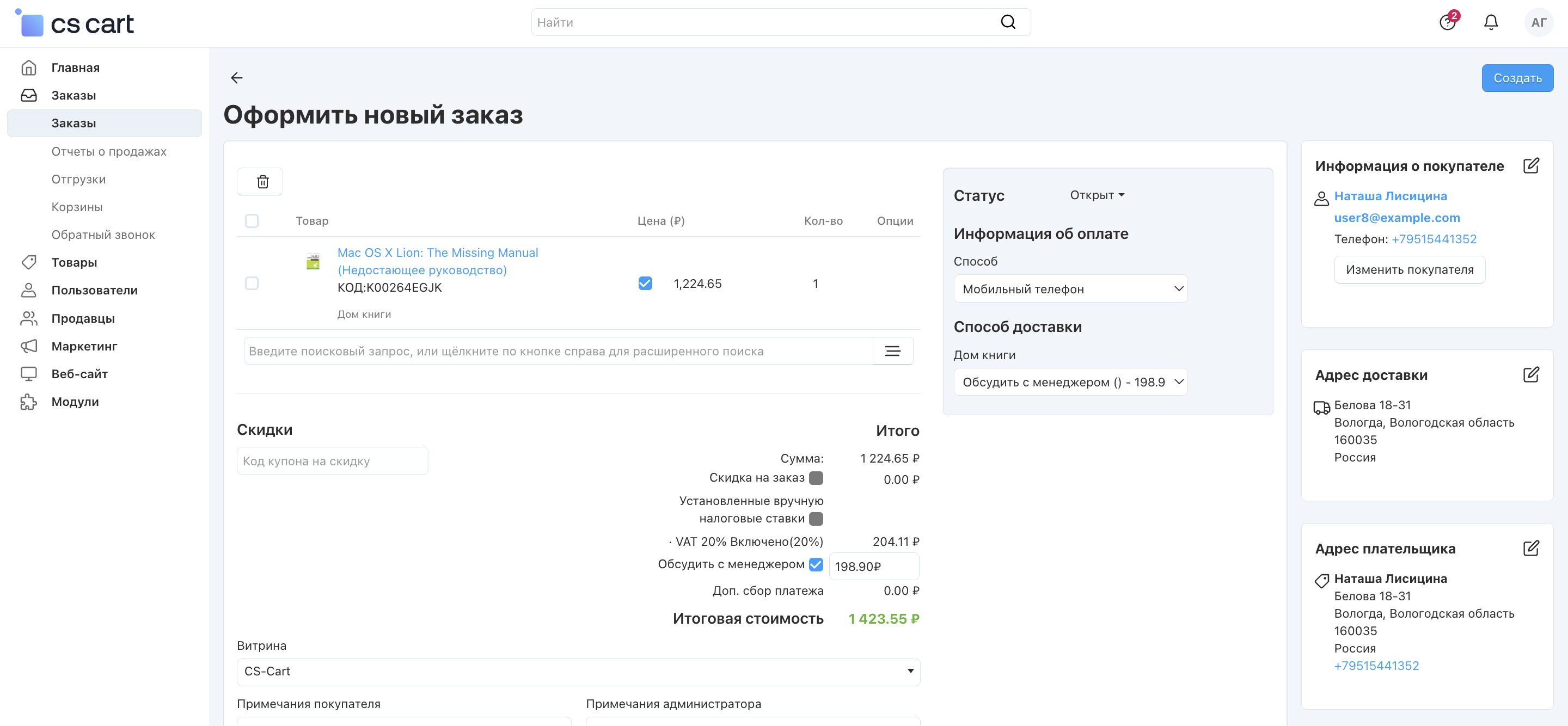 4. Вы попадёте на страницу создания заказа, но информация из скопированного заказа уже будет введена.
