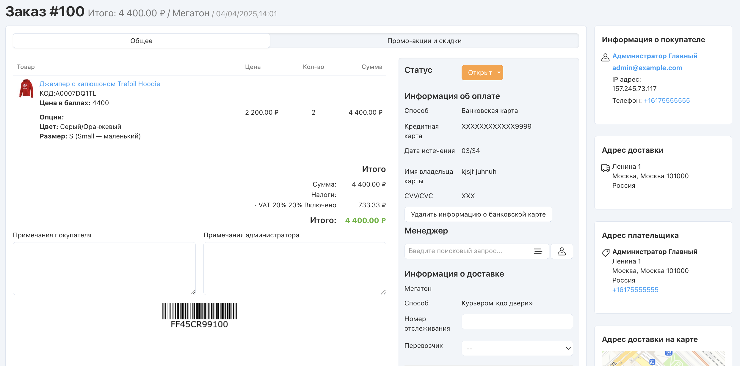 Как вручную удалить из заказа реквизиты банковской карты¶