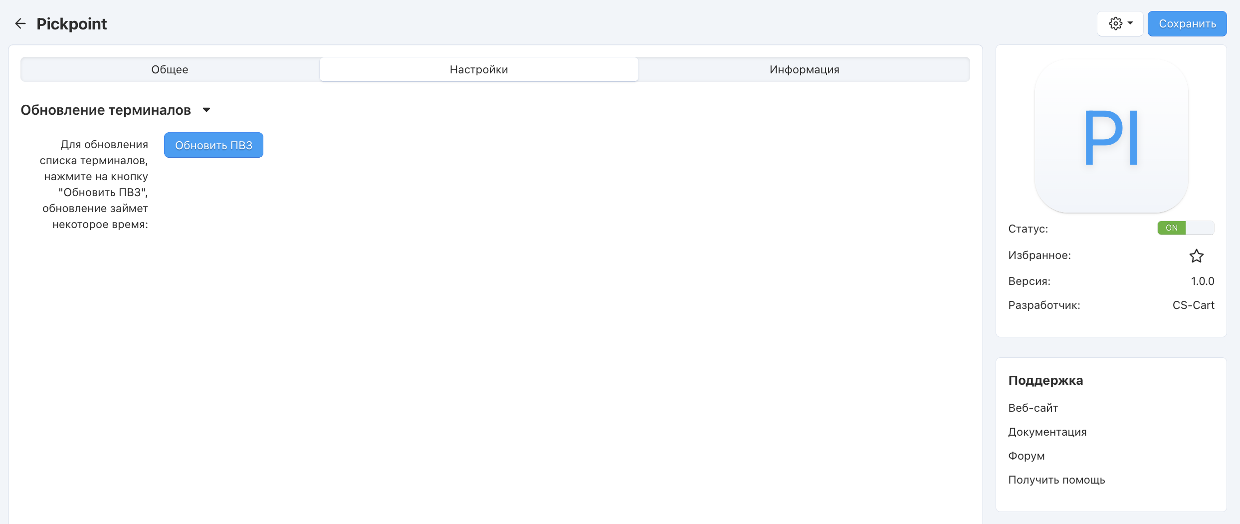 Убедитесь, что модуль “Pickpoint” установлен и включен.