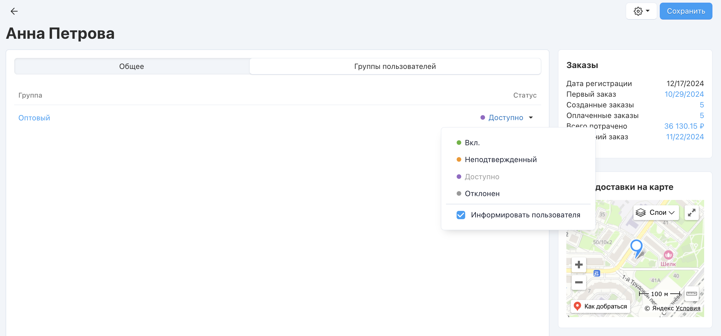 2.1. Перейдите на страницу Пользователи → Покупатели.