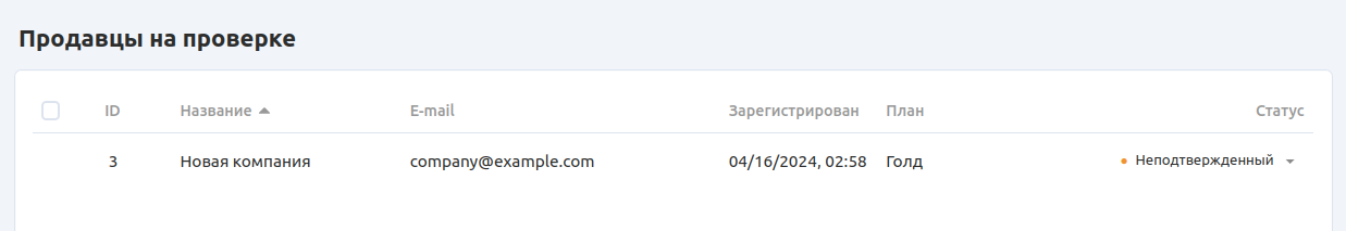 • Вкладка Продавцы содержит список всех продавцов, которые только что присоединились к маркетплейсу.