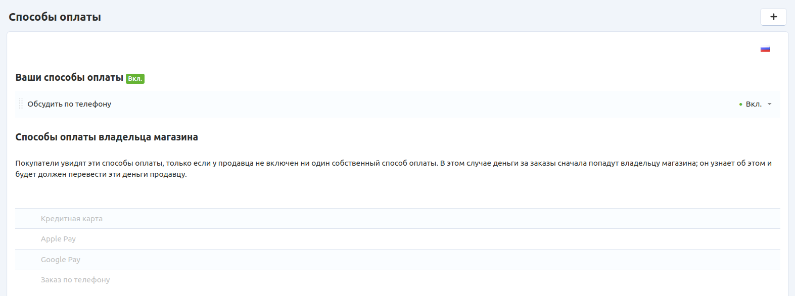 Продавцы создают собственные способы оплаты.