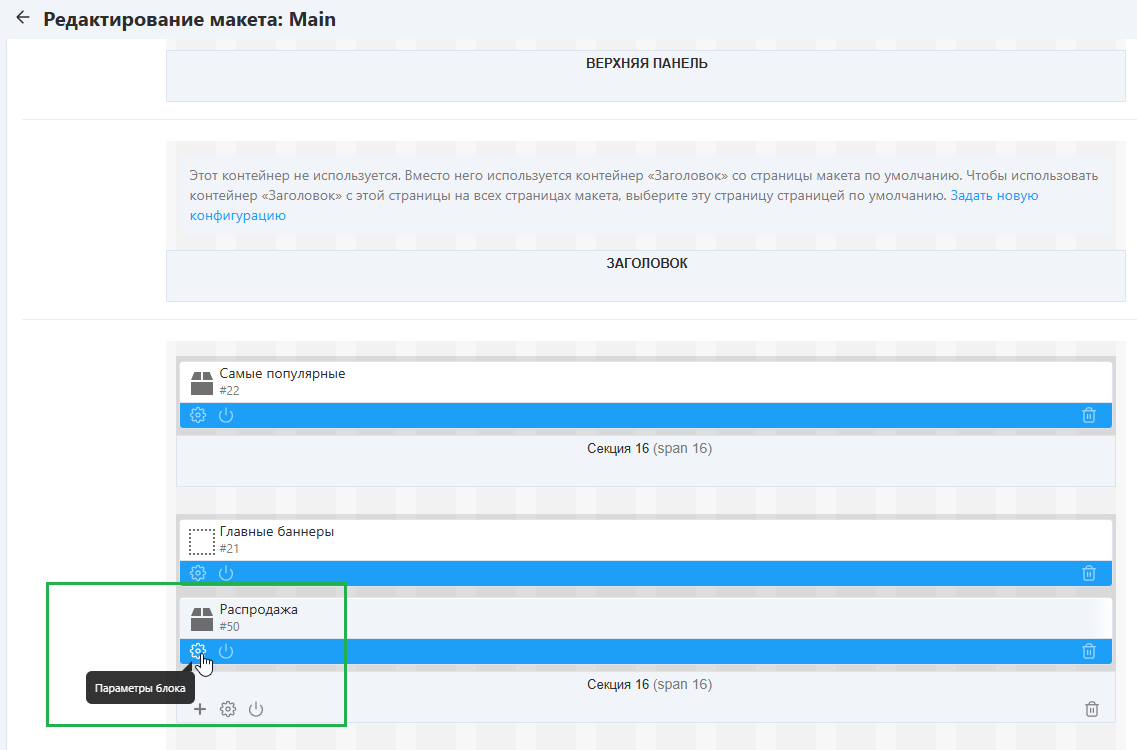 Чтобы добавить раздел Распродажа на домашнюю страницу, выполните следующие шаги: