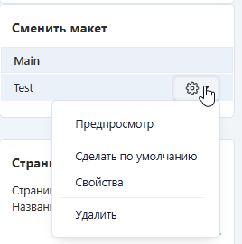 Новый макет появится в списке макетов справа, под заголовком Сменить макет. Вы можете переключаться между макетами, нажимая на их названия в списке. При наведении на название макета появится кнопка с изображением шестеренки: