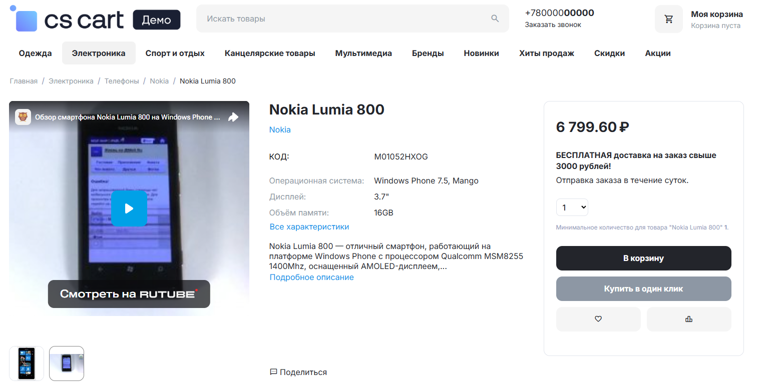 В некоторых случаях важно показать покупателям видео о товаре, например, инструкцию по его использованию. В CS-Cart вы можете добавить видео прямо в галерею изображений на странице товара. Для этого выполните следующие шаги: